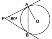 In the given figure, PA and PB are two tangents to the circle with center O. If ∠APB = 60° then ∠OAB is