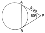 In the given figure, PA and PB are tangents to the given circle such that PA = 5 cm and ∠APB = 60°. The length of chord AB is