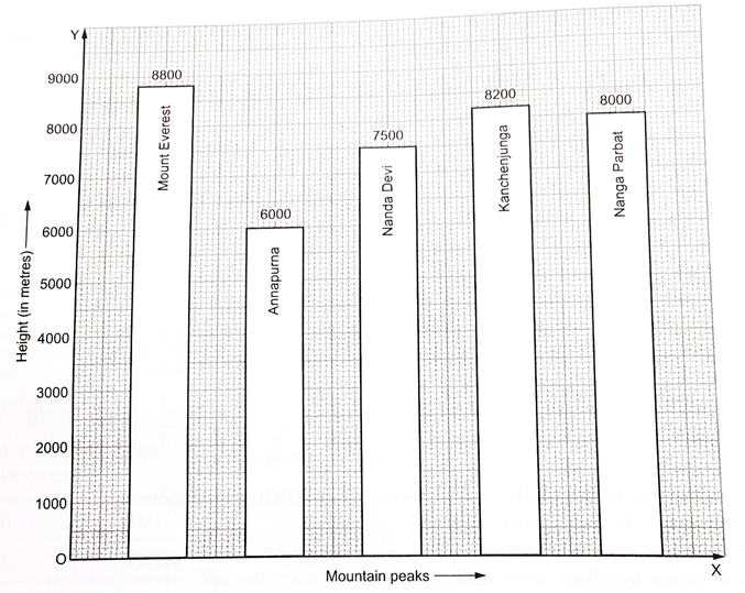 Given below is a bar graph showing the heights of five mountain peaks.