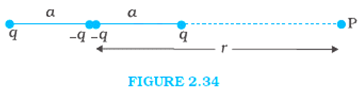 Figure 2.34 shows a charge array known as an electric quadrupole. For a point on the axis of the quadrupole, obtain the dependence of potential on r for r/a >> 1, and contrast your results with that due to an electric dipole, and an electric monopole (i.e., a single charge).