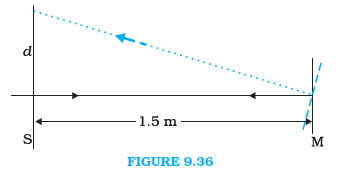 Light incident normally on a plane mirror attached to a galvanometer coil retraces backwards as shown in Fig. 9.36. A current in the coil produces a deflection of 3.50 of the mirror. What is the displacement of the reflected spot of light on a screen placed 1.5 m away?