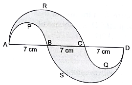 In the given figure, APB and CQD are semicircle of diameter 7 cm each, while ARC and BSD are semicircles of diameter 14 cm each. Find the (i) perimeter, (ii) area of the shaded region.