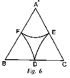 In fig. 6, arcs are drawn by taking vertices A, B and C of an equilateral triangle ABC of side 14 cm as centers to intersect the sides BC, CA and AB at their respective mid-points D, E and F. Find the area of the shaded region.