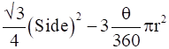 As ∠A = ∠B = ∠C = 60°, θ =60° for all three sectors