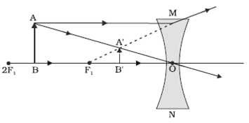 (a) Draw a ray diagram to show the formation of image of an object placed between infinity and optical center of a concave lens.