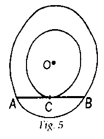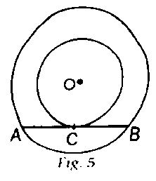 In Fig. 5, the chord AB of the larger of the two concentric circles, with centre O, touches the smaller circle at C. Prove that AC = CB.