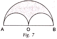 In figure 7, a semi-circle is drawn with O as center and AB as diameter. Semi-circles are drawn with AO and OB as diameters. If AB = 28 m, find the perimeter of the shaded region. [Use π = 22/7].