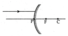 A ray of light is incident on a convex mirror as shown. Redraw the diagram and complete the path of this ray after" reflection from the mirror. Mark angle of incidence and angle of reflection on it.