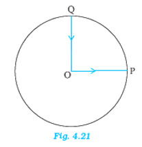 A cyclist starts from the centre O of a circular park of radius 1 km, reaches the edge P of the park, then cycles along the circumference, and returns to the centre along QO as shown in Fig. 4.21. If the round trip takes 10 min, what is the (a) net displacement, (b) average velocity, and (c) average speed of the cyclist?