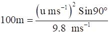 Maximum horizontal distance travelled by the ball=Range =R= 100m