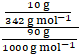 Given : (Molar mass of sucrose = 342 g mol–1)