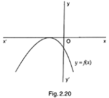 The graph of the polynomial f(x) = ax2 + box + c is as shown in Fig. 2.20. Write the value of b2 – 4ac and the number of real zeros of f (x).