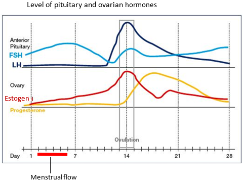 During menstrual phase, the levels of hormones secreted by corpus luteum and hormones secreted by pituitary gland are low.