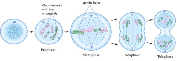With the help of suitable diagrams, explain the mitosis in detail.
