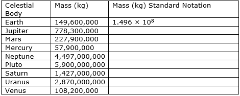 (A) Complete the table by expressing the distance from each planet to the Sun in scientific notation.