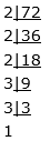 72 = 2 × 2 × 2 × 3 × 3