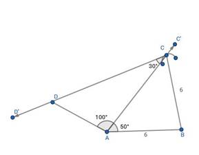 AB = 6 cm, BC = 6 cm, ∠BAC = 50°, ∠ACD = 30° ,∠CAD = 100°
