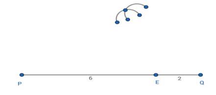 Step 2 : Mark a point E on PQ such that PE = 6cm and EQ = 2cm