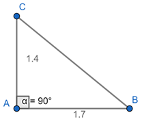 Sum of perpendicular sides = 1.41 + 1.73 = 3.14 cm