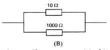 And in arrangement B both 10 ohm and 1000 ohm are in parallel.