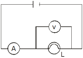 The diagram below shows a circuit containing a lamp L, a voltmeter and an ammeter. The voltmeter reading is 3 V and the ammeter reading is 0.5 A.
