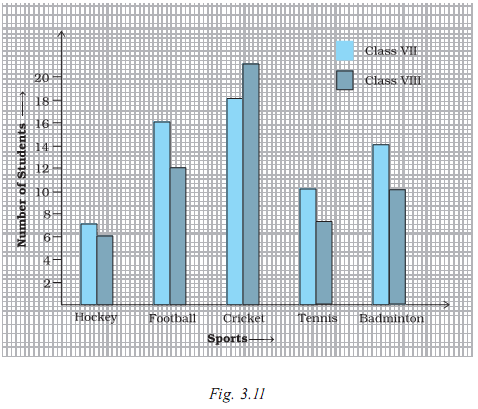 D. For which sport is the number of students of Class VII less than that of Class VIII?