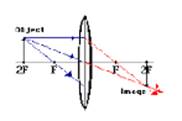 If a Magnification of, -1 (minus 1) is obtained by using a converging lens, and then the object has to be placed: