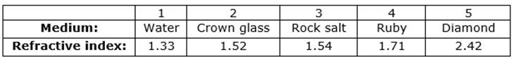 (i) Example of a medium pair so that light speeds up when it goes from one of these medium to another is Crown glass to water
