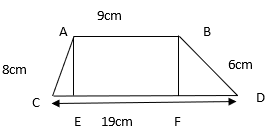 Given, The lengths of parallel sides of a trapezium are 19 cm. and 9 cm. and the length of slant sides are 8 cm. and 6 cm.