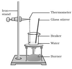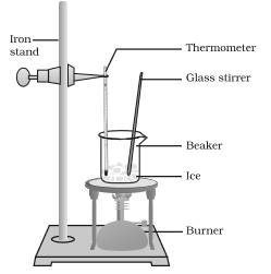 i. Take small amount of water in a beaker and suspend a thermometer so that its bulb (lower part) is in contact with the ice.