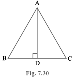 In Δ ABC, AD is the perpendicular bisector of BC (see Fig. 7.30). Show that Δ ABC is an isosceles triangle in which AB = AC.