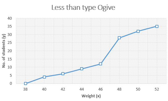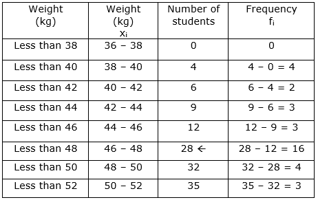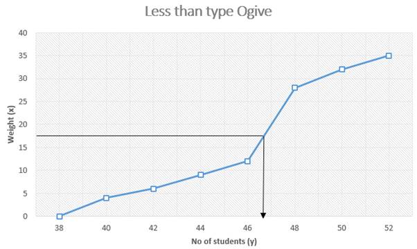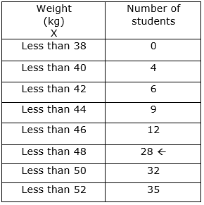 We have been given data of weight in less than type and data of number of students.