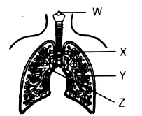The diagram shows part of the human gas exchange system.
