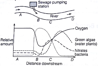 At B the concentration of blue green algae is high, they take up the atmospheric oxygen and then the nitrated bacteria convert it into ammonia, so that it can be used by aquatic environment. In this way they release nutrients back into the environment for other organisms to use.