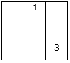 Step 2: Fill the next number, that is, number 3 to the one-upper row and to the one-right column.