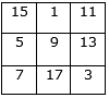 Now, let us try to create a magic square using these odd numbers from 1 to 17 stepwise.