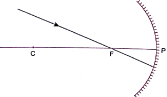 when a ray of light passes through the focus of a concave mirror then it becomes parallel to the principal axis. Here incident ray AE is passing through the focus F of concave mirror and strikes the mirror at E, then it gets reflected through path EG parallel to the axis.