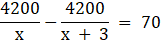 A person on tour has Rs. 4200 for his expenses. If he extends his tour for three days; he has to cut down his daily expenses by Rs 70. Find the original duration of the tour.