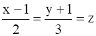 ⇒ x = 2λ + 1, y = 3λ – 1 and z = λ