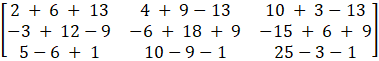 = [1(3 – 1) – 2(2 + 1) + 5(2 + 3)]