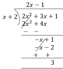 p(x) = 2x2 + 3x + 1, g(x) = x + 2