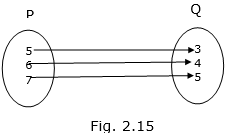 Figure 2.15 shows a relationship between the sets P and Q. Write this relation in