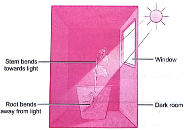 • The root shows negative response to the stimulus, i.e., it bends away from the sunlight.