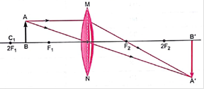 iii. When the object is placed at the twice distance of focal length then the magnification produced is -1.