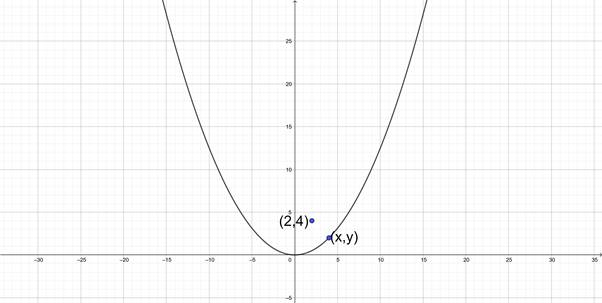 Let us find the distance(S) between the points (x, y) and (2, 4)