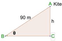 The length of a string between a kite and a point on the ground is 90 m. If the string makes an angle θ with the level ground such that tan . Find the height of the kite.