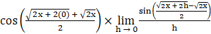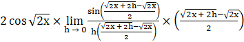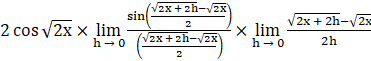 Again we get an indeterminate form, so multiplying and dividing √(2x + 2h) + √(2x) to get rid of indeterminate form.