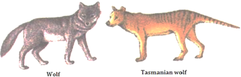 ii. Name the process that has resulted in evolution of wolf and another similar animal such as Tasmanian wolf.