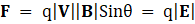 Where F is the force on the Charged particle having charge q, moving with a velocity