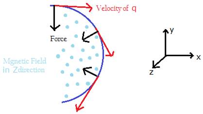 Since charged Particle is moving in positive X direction same is the direction of the current, depicted by the middle finger, force should be towards negative Y direction depicted by our thumb, so we find our forefinger depicting magnetic field is in Positive Z direction